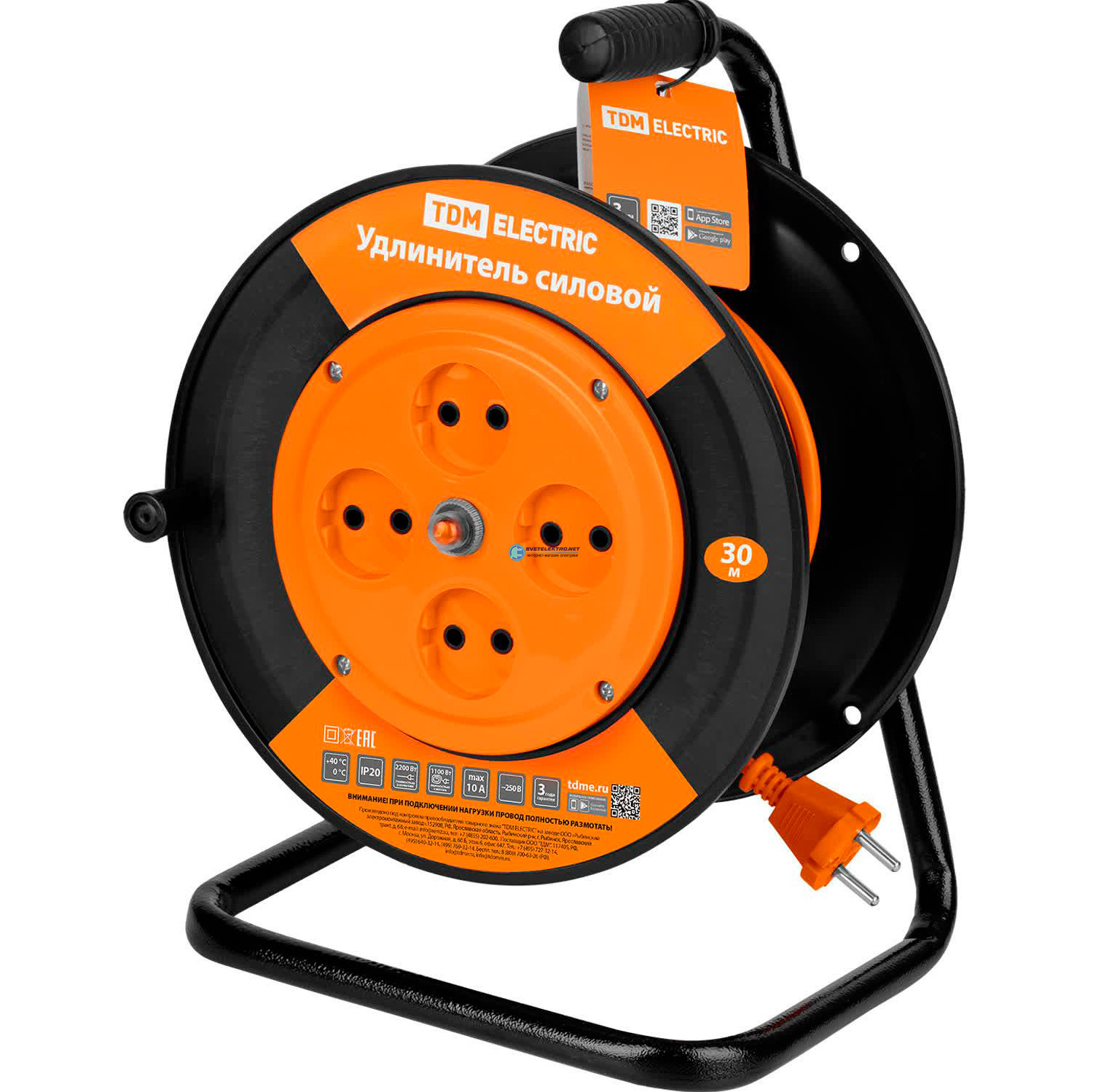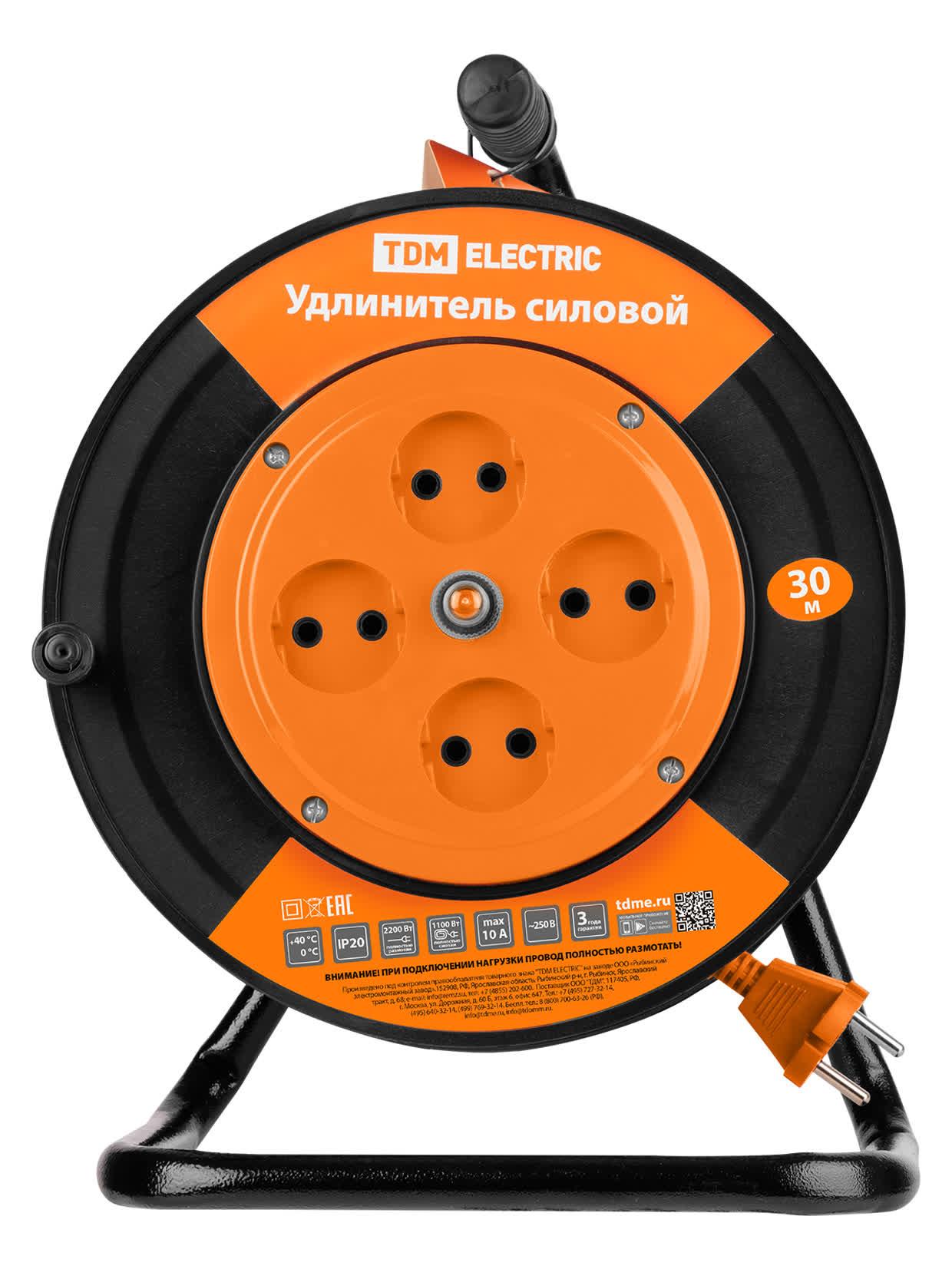 Удлинитель силовой УК10-004 (4 места/30м ПВС 2х1,0), код SQ1301-0521, производитель TDM