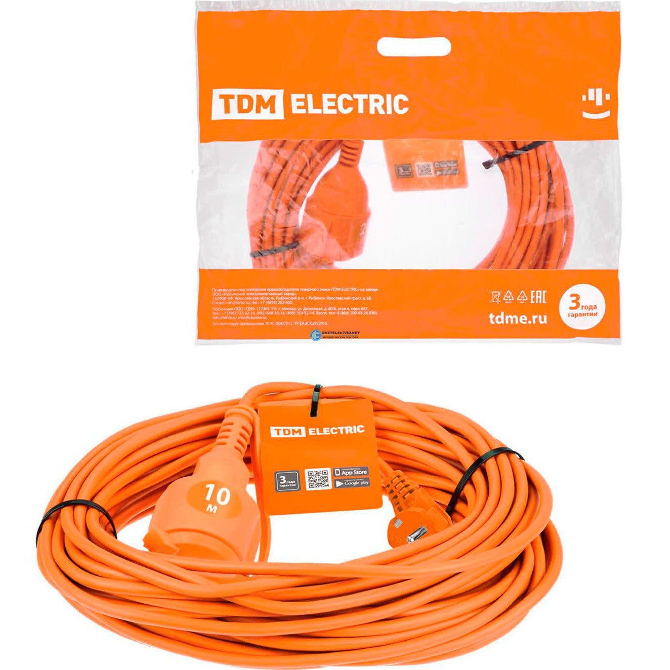 Удлинитель-шнур силовой УШз10 (штепс. гнездо 10м ПВС 3х075), код SQ1301-0610, производитель TDM