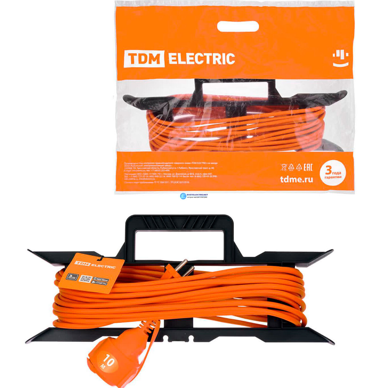 Удлинитель-шнур силовой на рамке УШ10 (штепс. гнездо 10м ПВС 2х10) SQ1302-0311 TDM