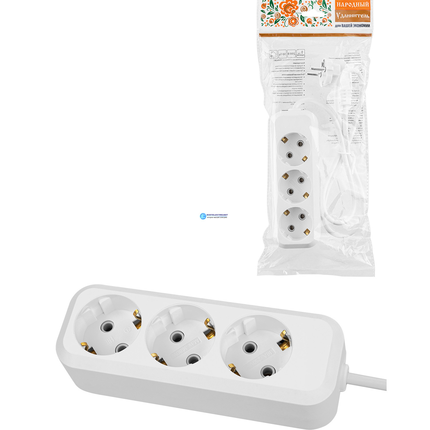 Удлинитель гнезда. метра. с/з. А. Вт. белый. НАРОДНЫЙ, код SQ1303-1041, производитель TDM
