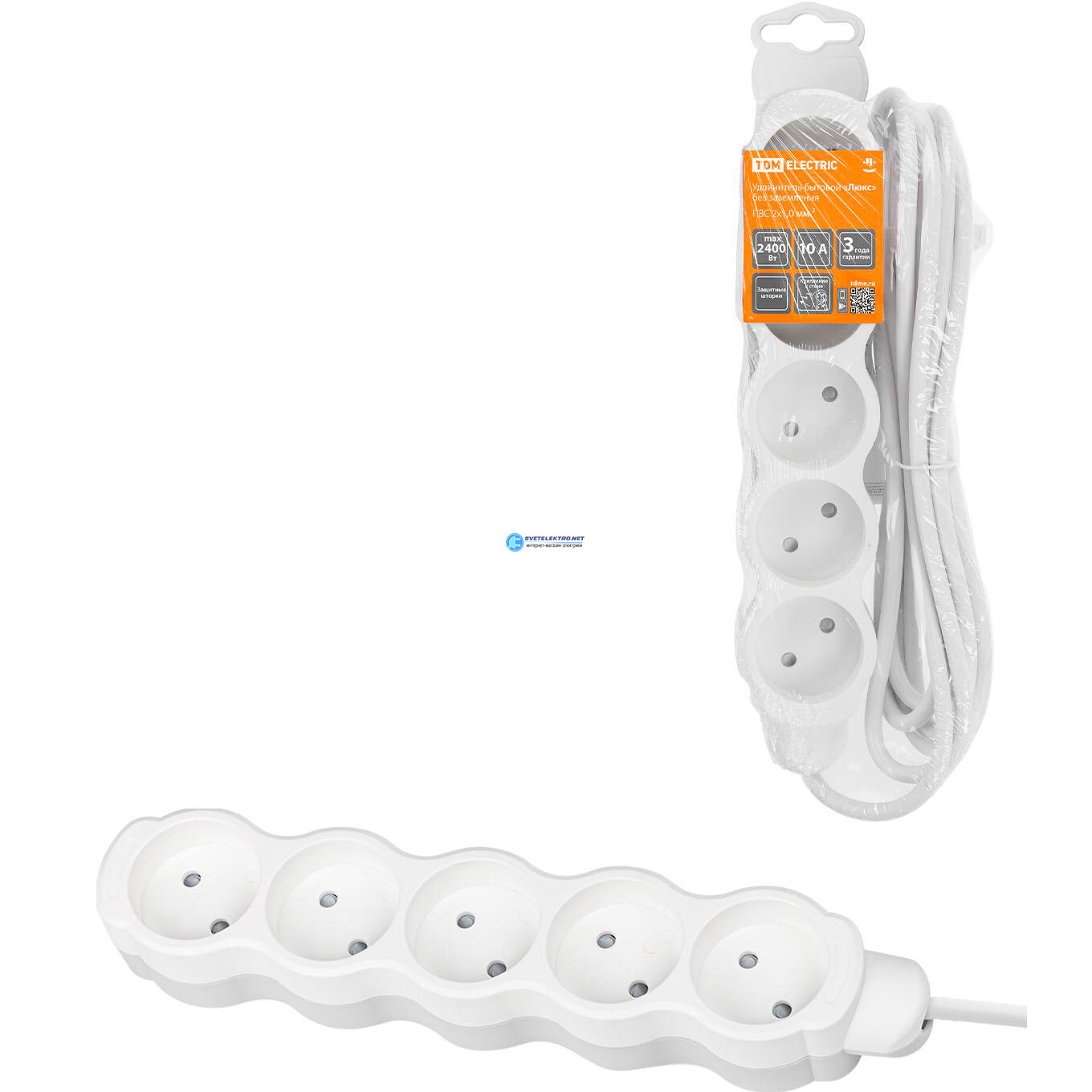 Удлинитель бытовой Люкс 5 гнезд 7 м б/з с з/ш ПВС 2х10 мм2 10 А 250 В 2400 Вт, код SQ1303-4014, производитель TDM