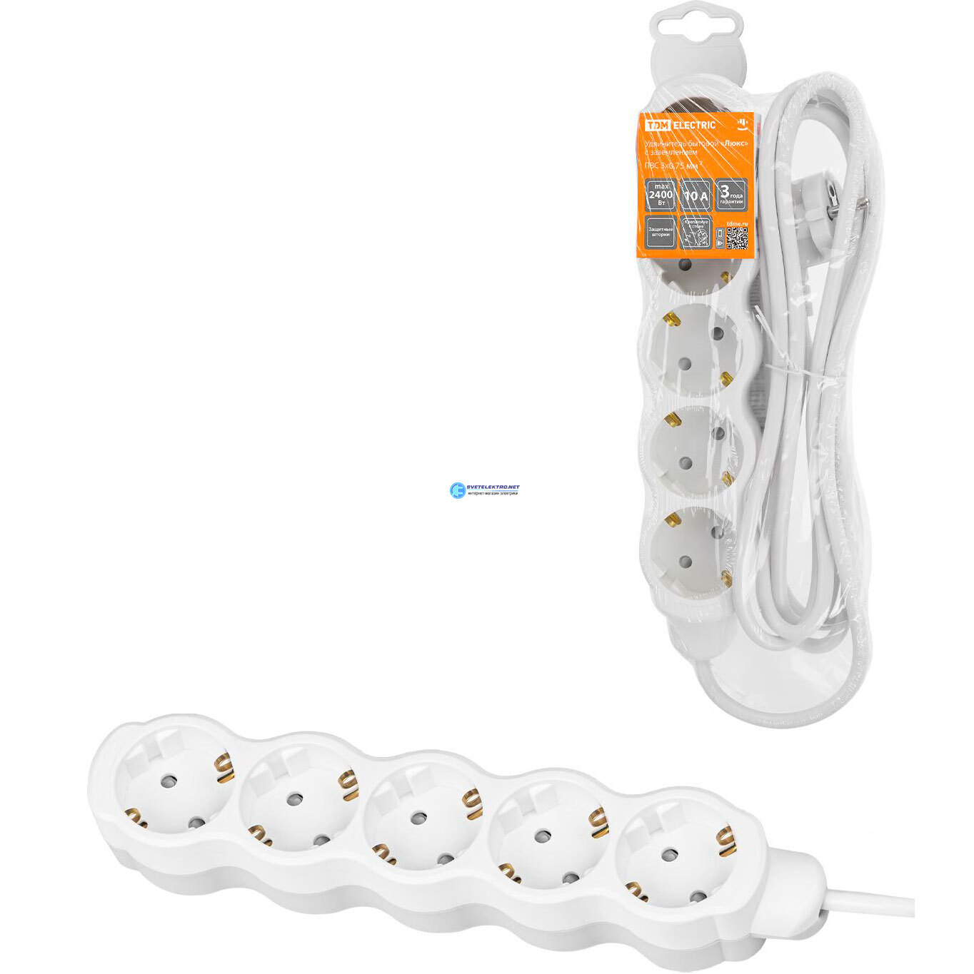 Удлинитель бытовой Люкс 5 гнезд 5 м с/з с з/ш ПВС 3х075 мм2 10 А 250 В 2400 Вт SQ1303-4024 TDM