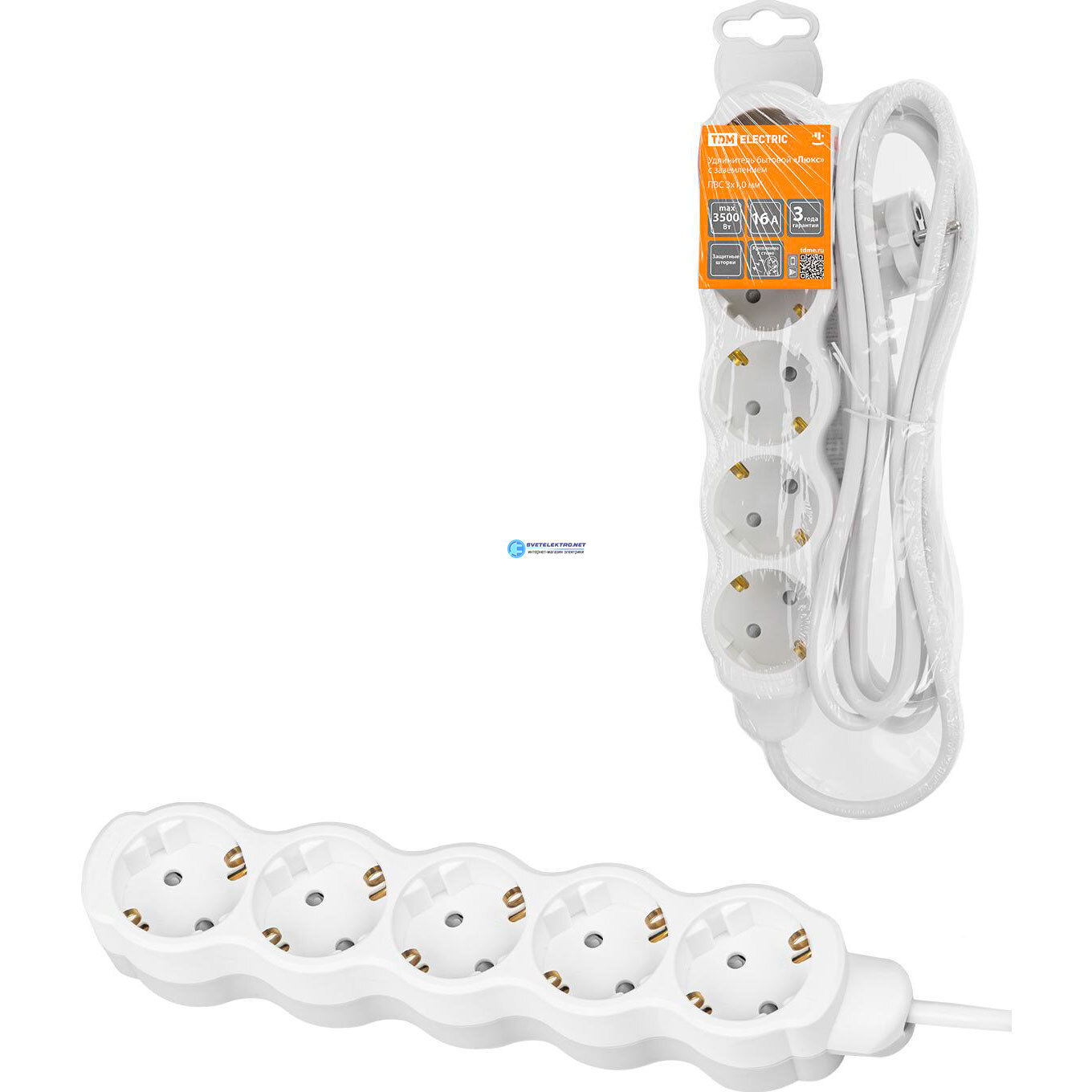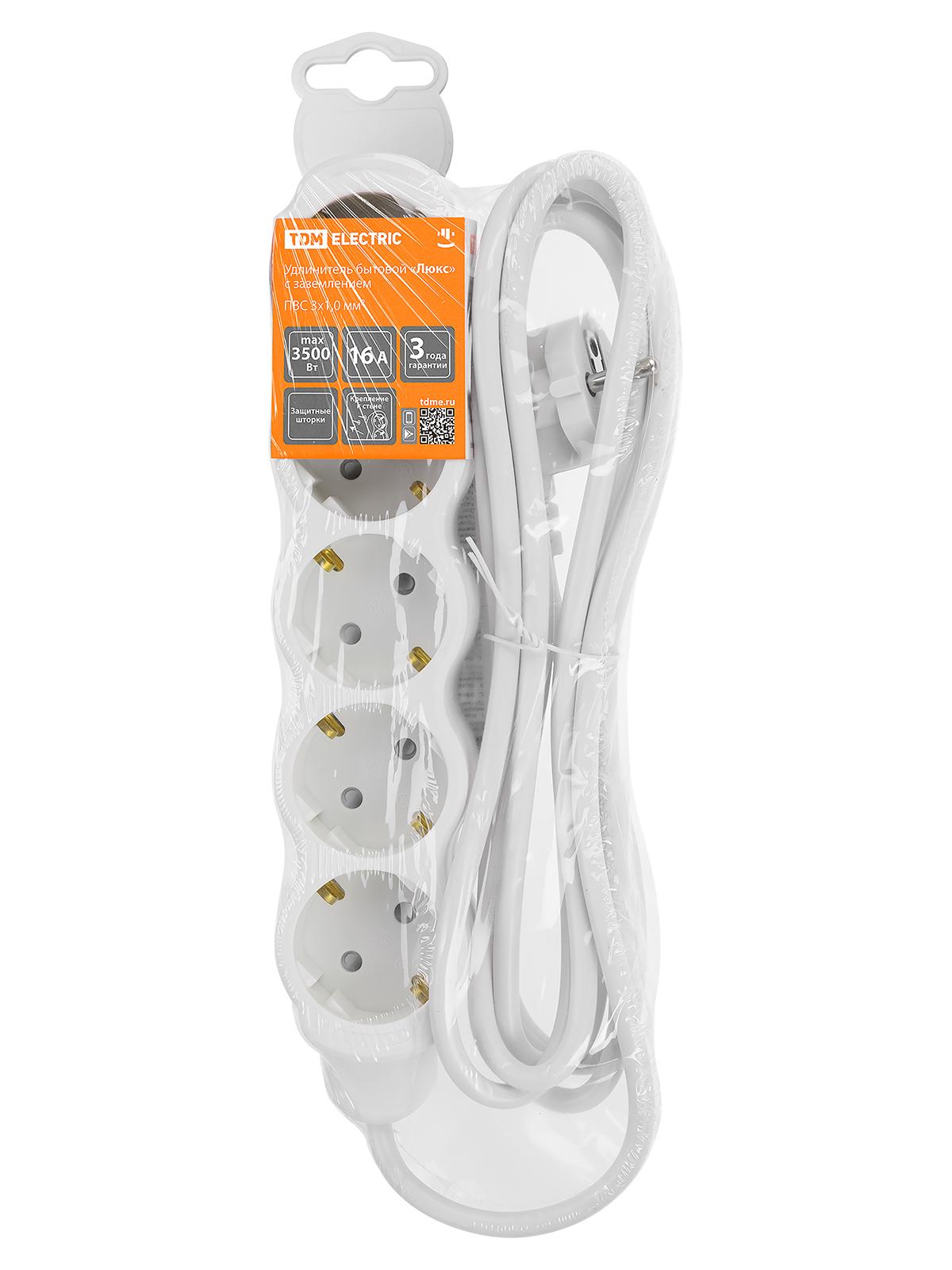 Удлинитель бытовой Люкс 5 гнезд 10 м с/з с з/ш ПВС 3х1 мм2 16 А 250 В 3500 Вт, код SQ1303-4039, производитель TDM