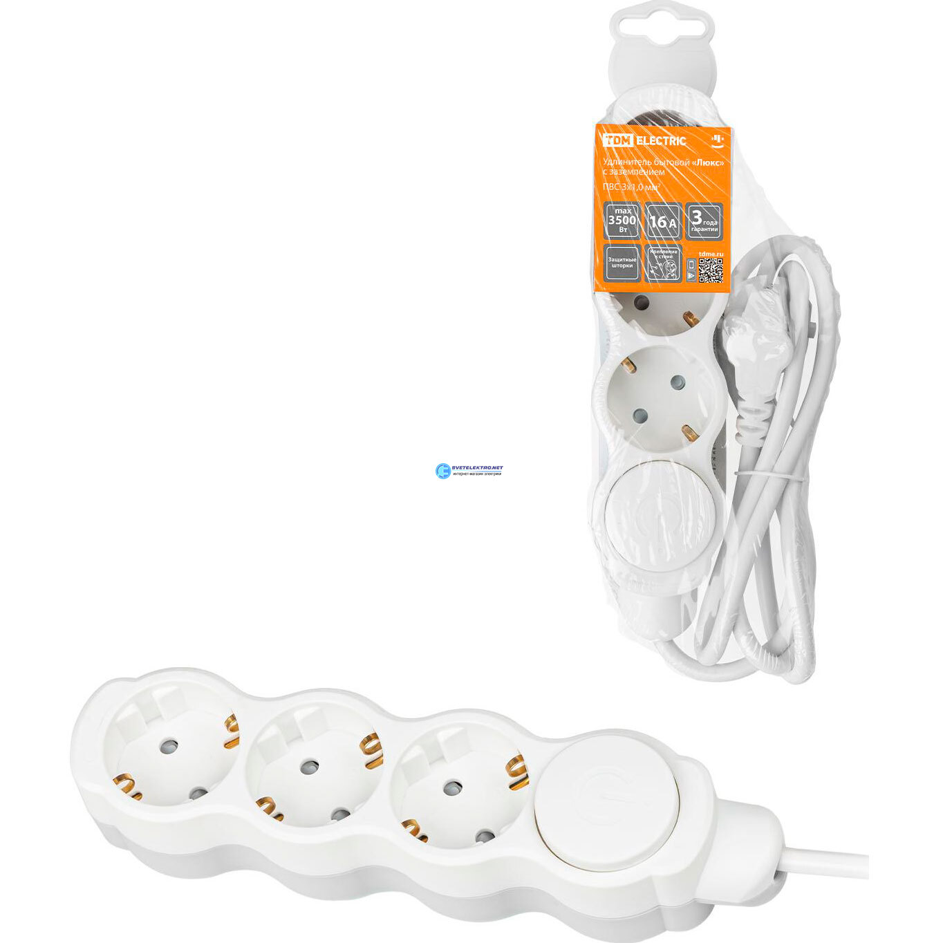 Удлинитель бытовой Люкс с выкл. гнезда 10 м с/з с з/ш ПВС мм2 16 А 250 В Вт, код SQ1303-4044, производитель TDM