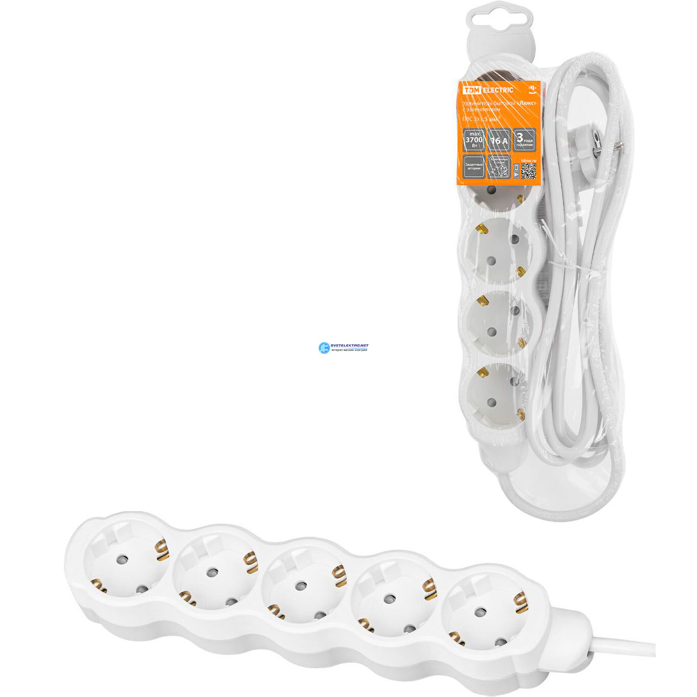 Удлинитель бытовой Люкс 5 гнезд 10 м с/з с з/ш ПВС 3х15 мм2 16 А 250 В 3700 Вт, код SQ1303-4066, производитель TDM