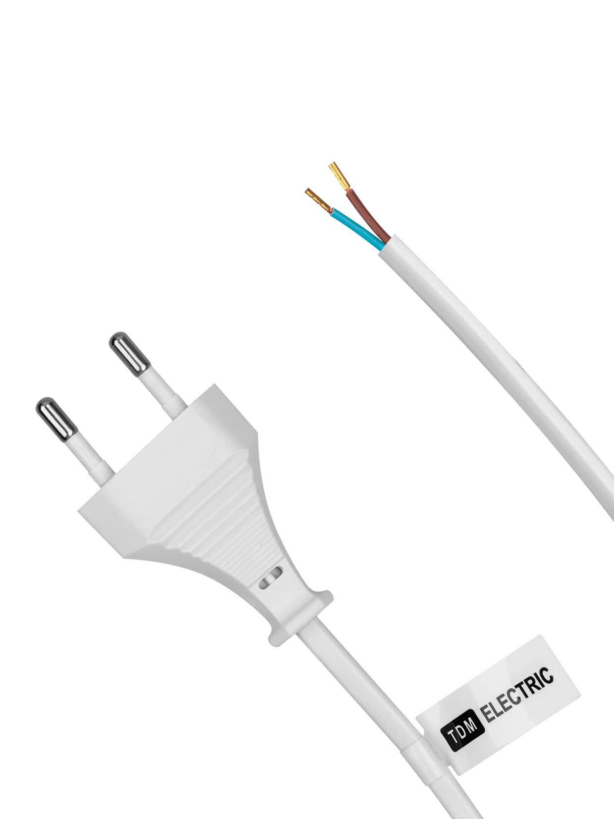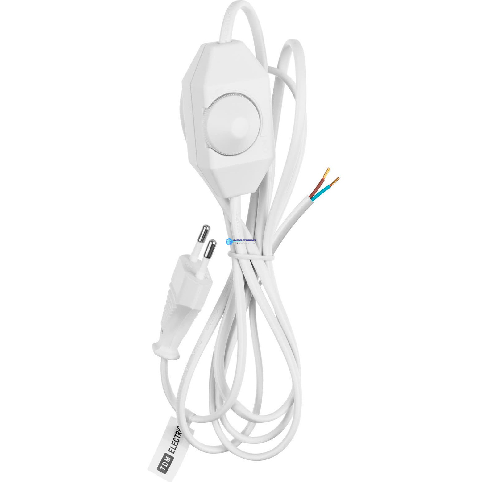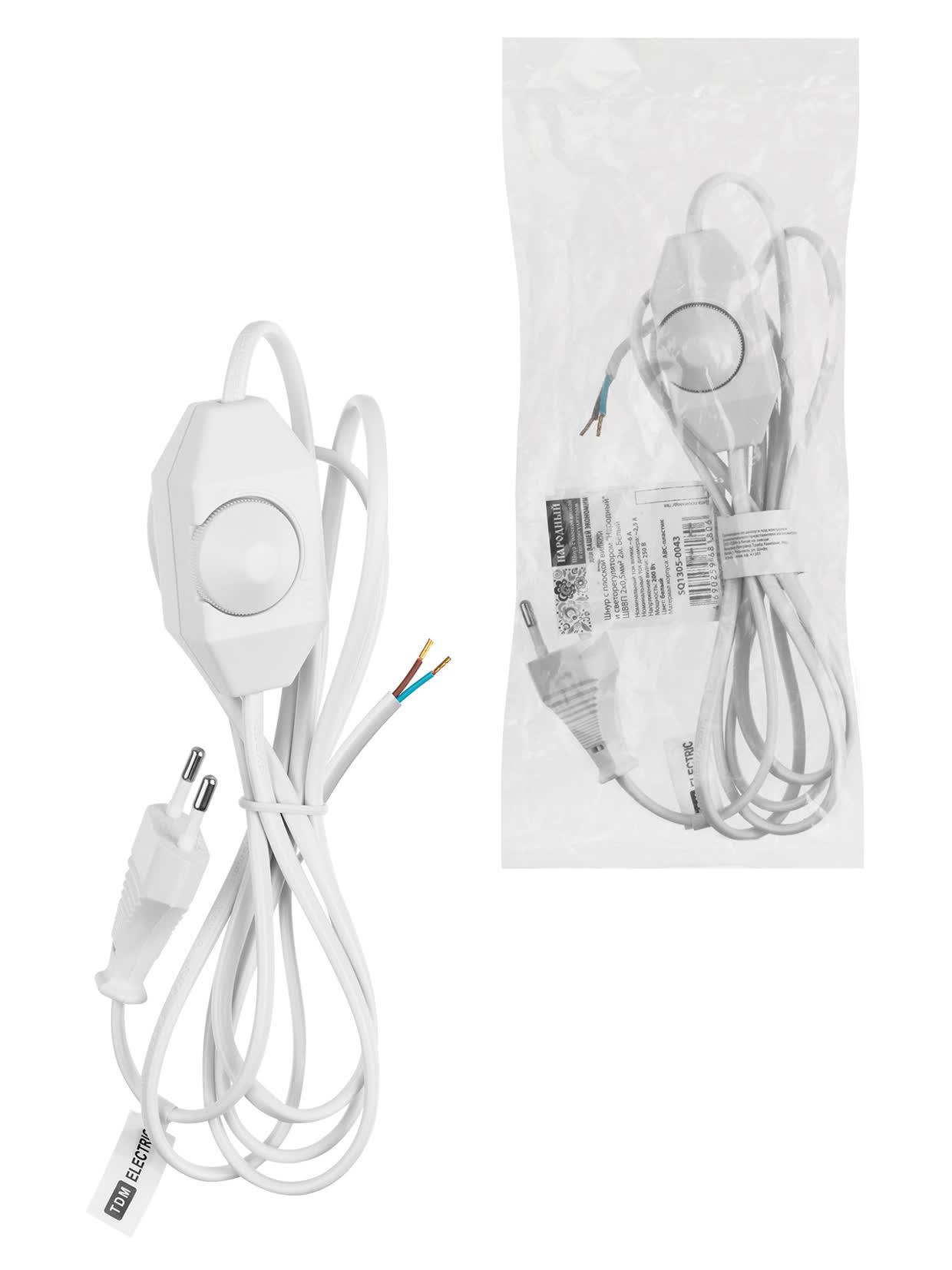 Шнур с плоской вилкой и светорегулятором "Народный" ШВВП 2х0,5 мм2, 2м, белый", код SQ1305-0043, производитель TDM