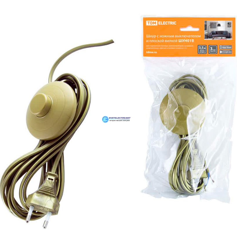Шнур с ножным выключателем и плоской вилкой ШУН01В ШВВП 2х0,75мм2 3,5м. бронза, код SQ1305-0063, производитель TDM