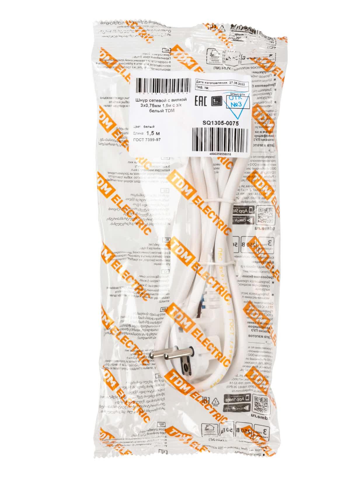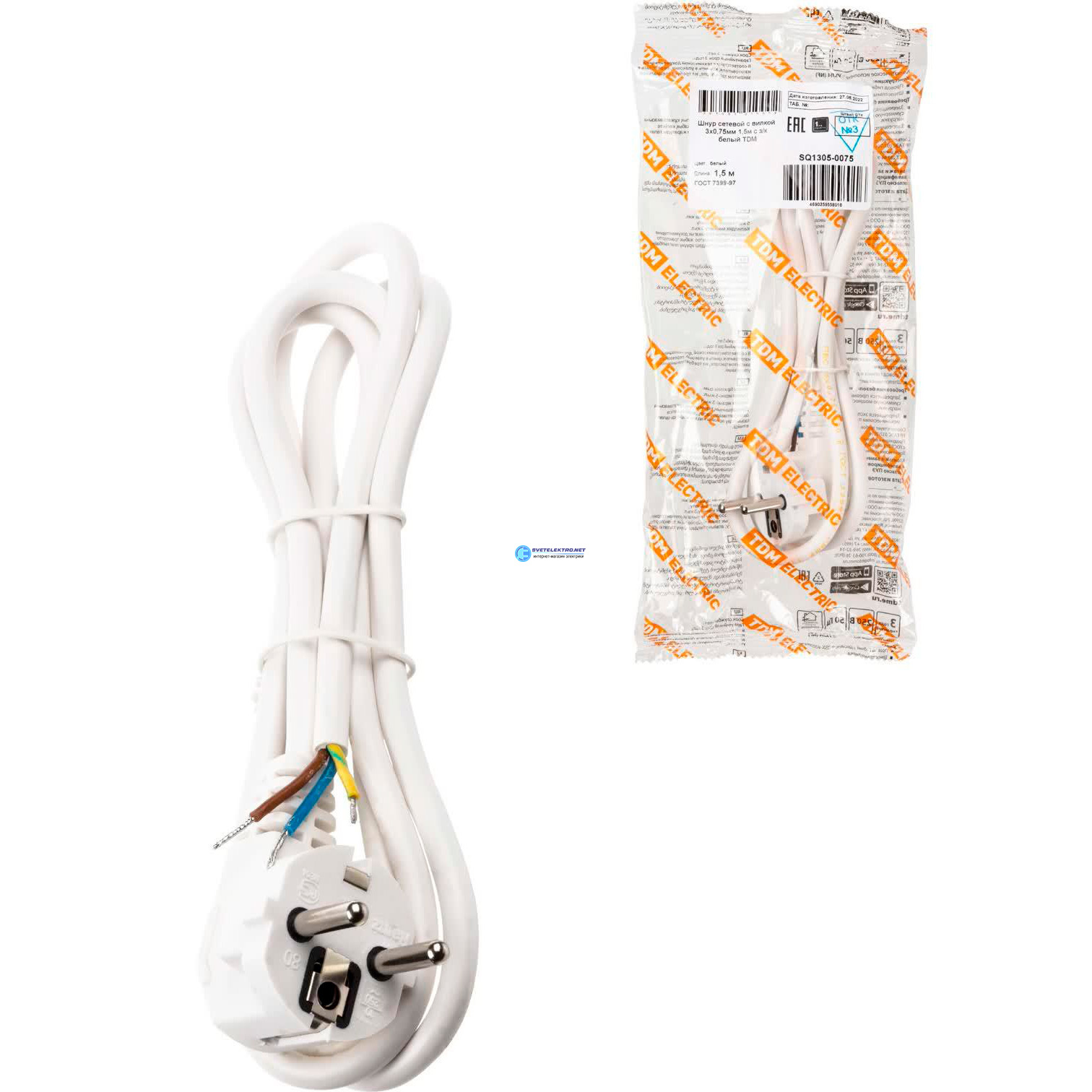 Шнур сетевой с вилкой ПВС 3x075мм 15м с/з белый, код SQ1305-0075, производитель TDM