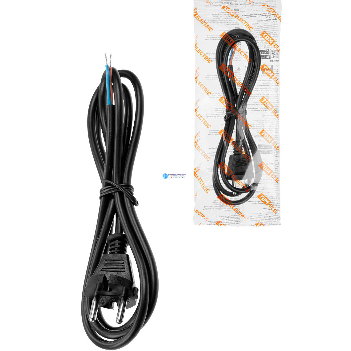 Шнур сетевой с вилкой ПВС 2x0.75мм 3м б/з черный, код SQ1305-0082, производитель TDM