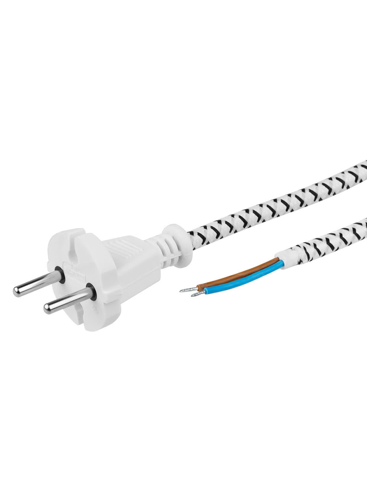 Шнур сетевой с вилкой в тканевой оплетке ПВС 2x075мм2 18м 1400 Вт б/з белый SQ1305-0091 TDM