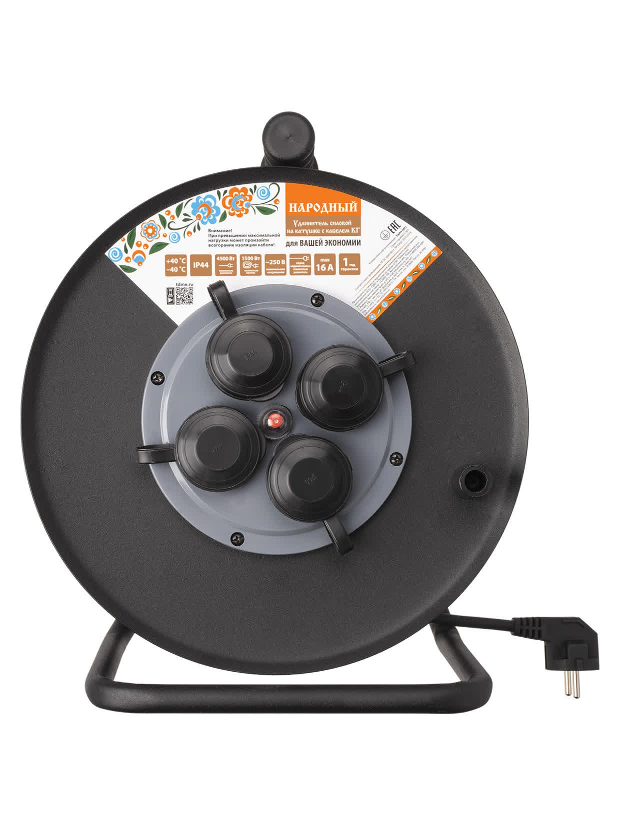 Удлинитель силовой УХз16-004 (метал. катушка А3 4 места IP44/40 м КГ 4000 Вт) Народный, код SQ1307-0171, производитель TDM