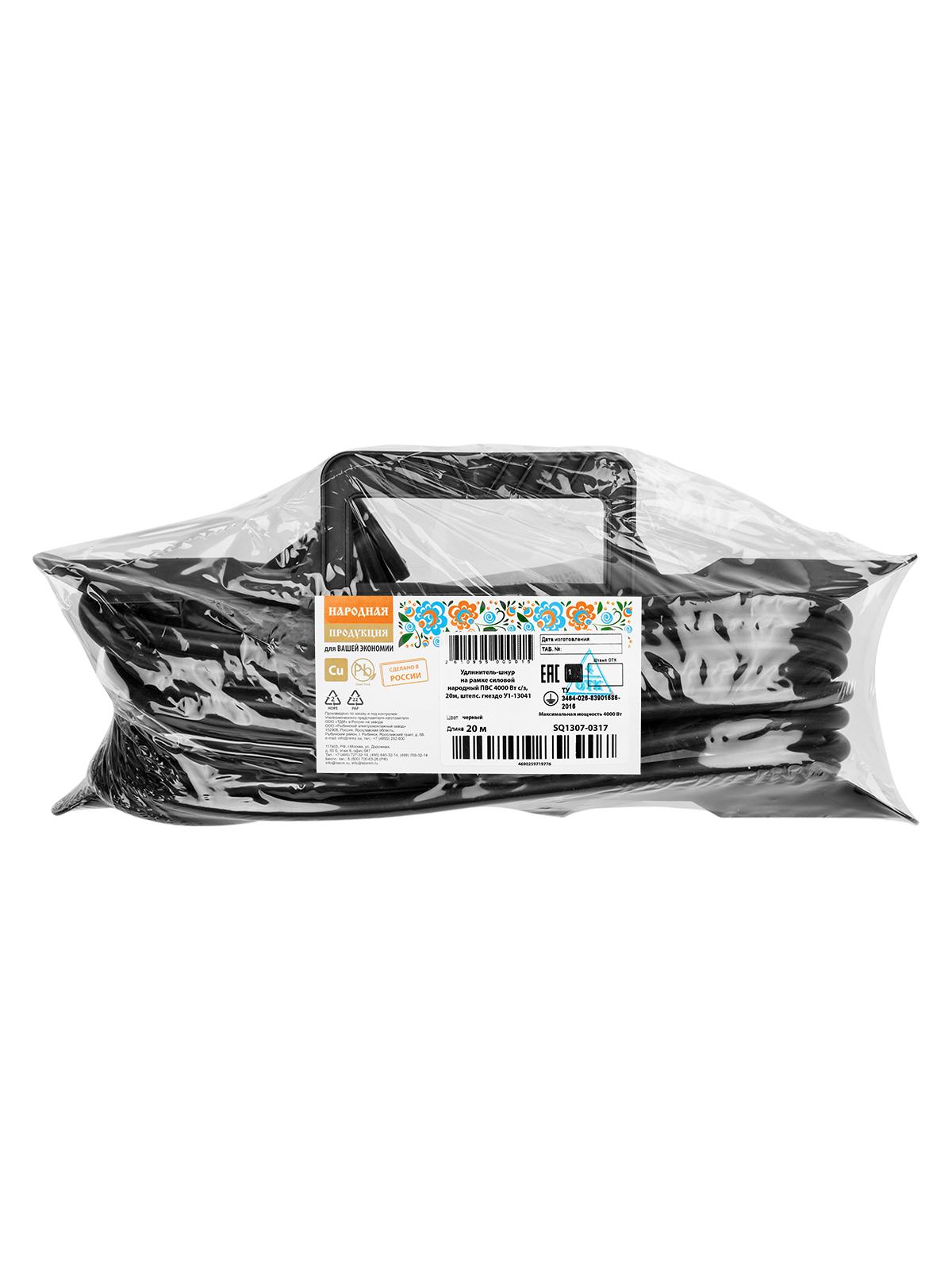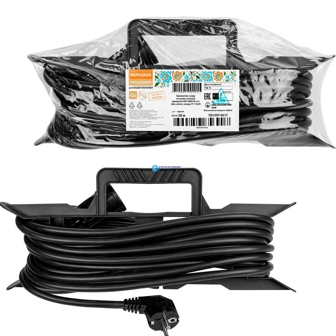 Удлинитель-шнур на рамке силовой народный ПВС 4000 Вт с/з 20м штепс. гнездо, код SQ1307-0317, производитель TDM