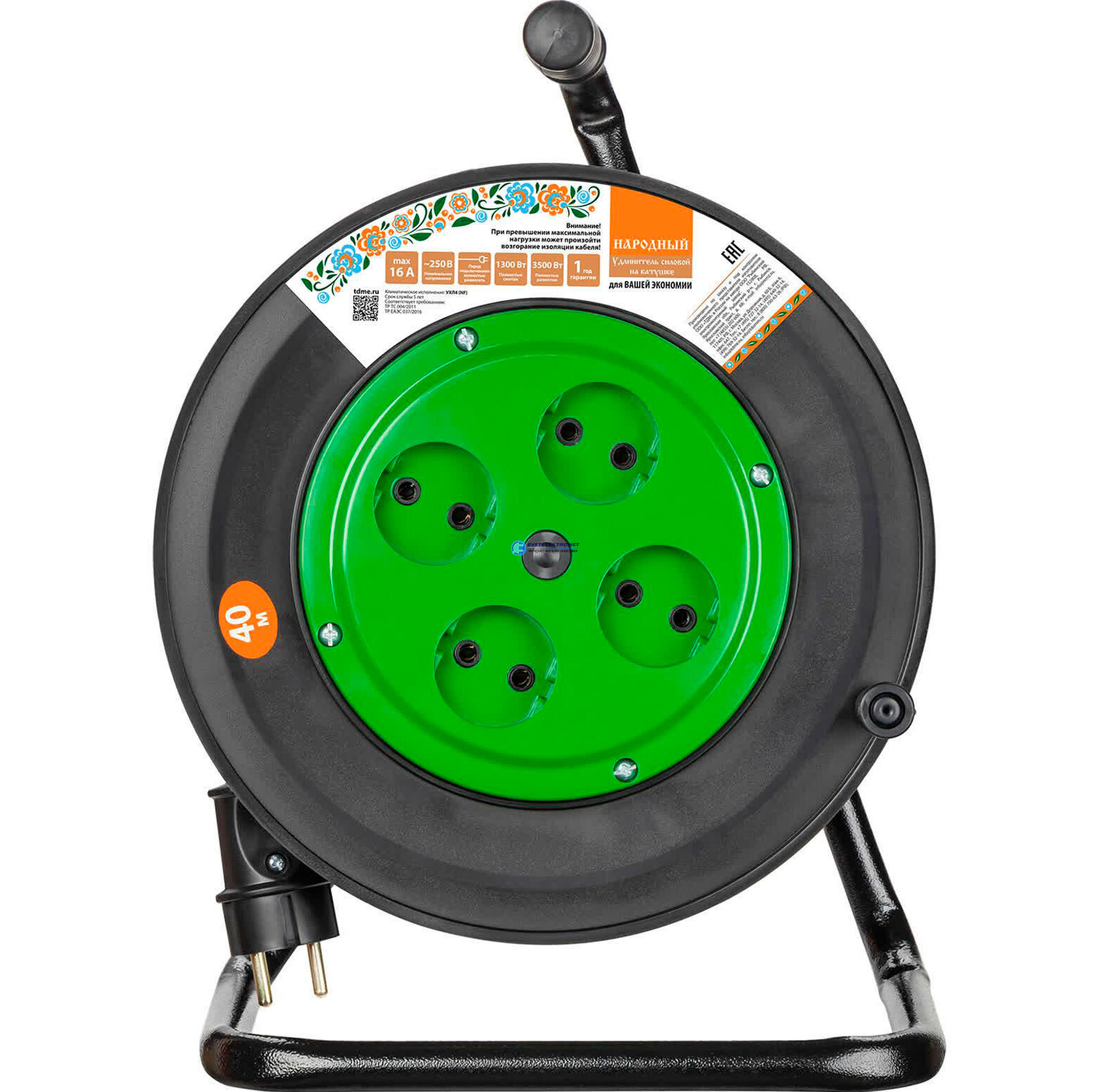 Удлинитель на катушке силовой народный 4 гнезда ПВС 3500 Вт б/з 40м SQ1307-0534 TDM
