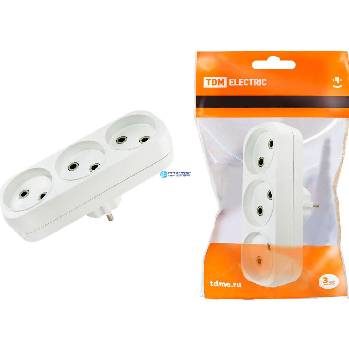 Блок на 3 гнезда 2П без заземления плоский 6А 250B, код SQ1806-0027, производитель TDM