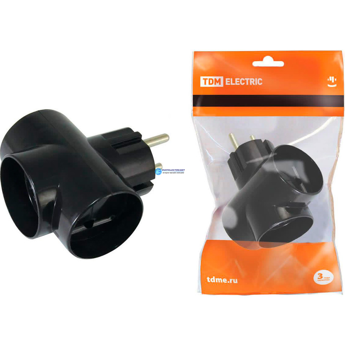 Тройник 3х2П 16А 250B черный TDM SQ1806-0042 TDM