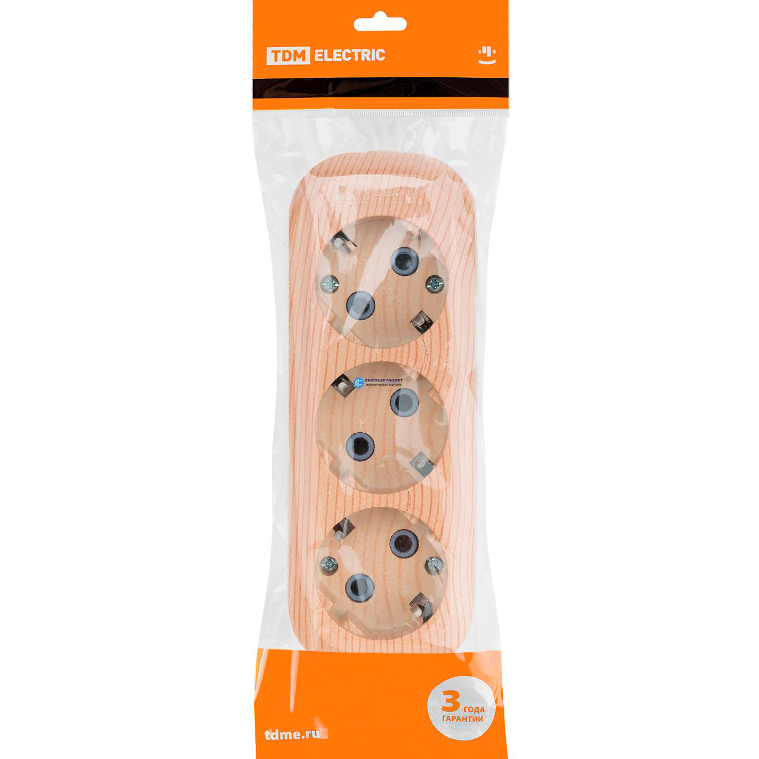 "Колодка розеточная 3 гнезда 2П+3 16А 250В ""Эко"" (сосна) TDM" SQ1806-0048 TDM
