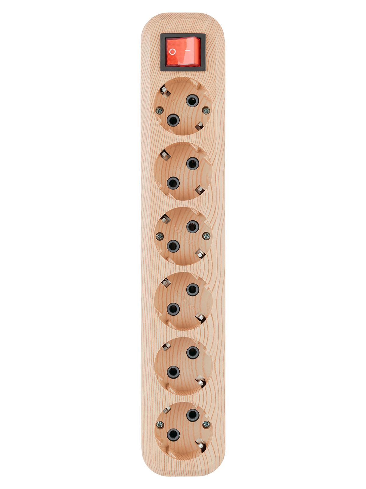"Колодка розеточная 6 гнезд 2П+3 с выключателем16А 250В ""Эко"" (сосна) TDM" SQ1806-0058 TDM