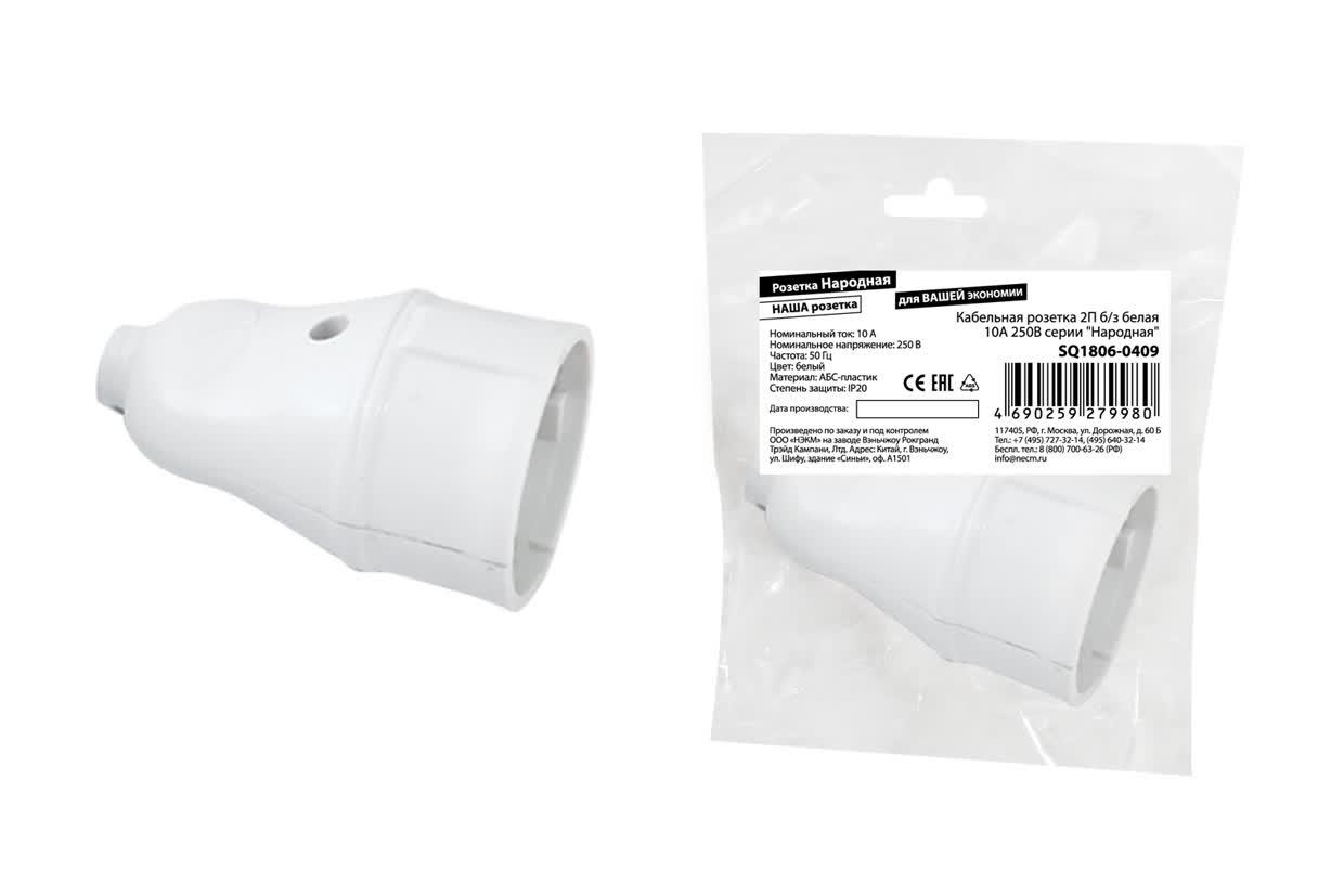 Кабельная розетка 2П б/з белая 10А 250B серии "Народная", код SQ1806-0409, производитель TDM