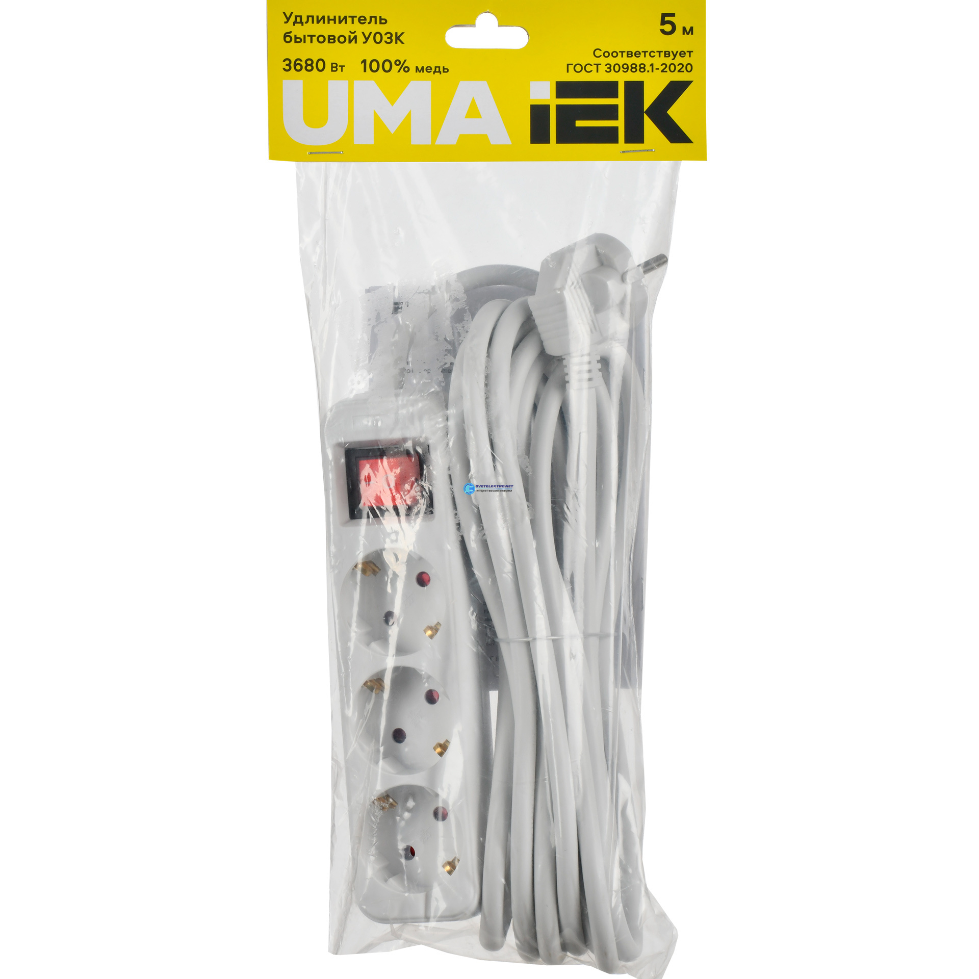 Удлинитель UMA У0К места 2P+PE 5м 16А белый, код UM-YP10-16-03-05-ZK-K01, производитель IEK