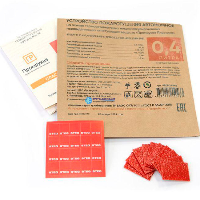 Противопожарная STEG Пластина ПР-0,4 (10 шт/уп), код PR08.26362, производитель Промрукав