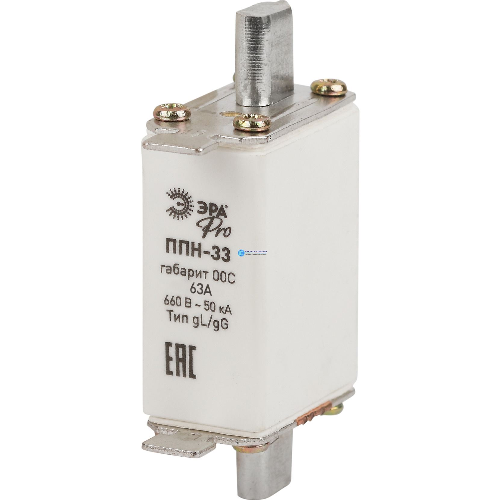 Предохранитель плавкий PRO ppn-33-00С-63 ППН-33, габарит 00С, 63А, код Б0064013, производитель ЭРА