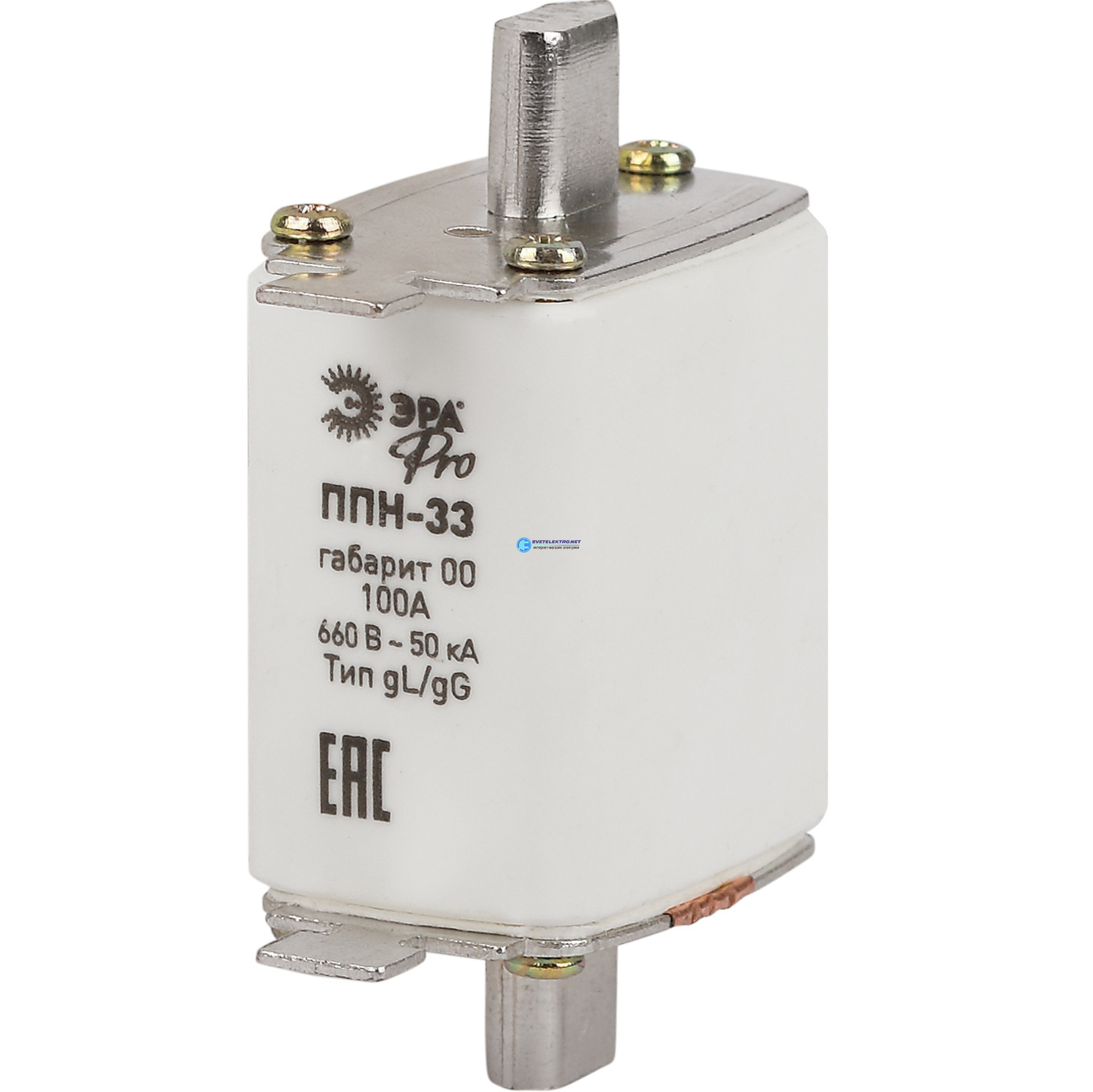 Предохранитель плавкий PRO ppn-33-00-100 ППН-33, габарит 00, 100А, код Б0064019, производитель ЭРА
