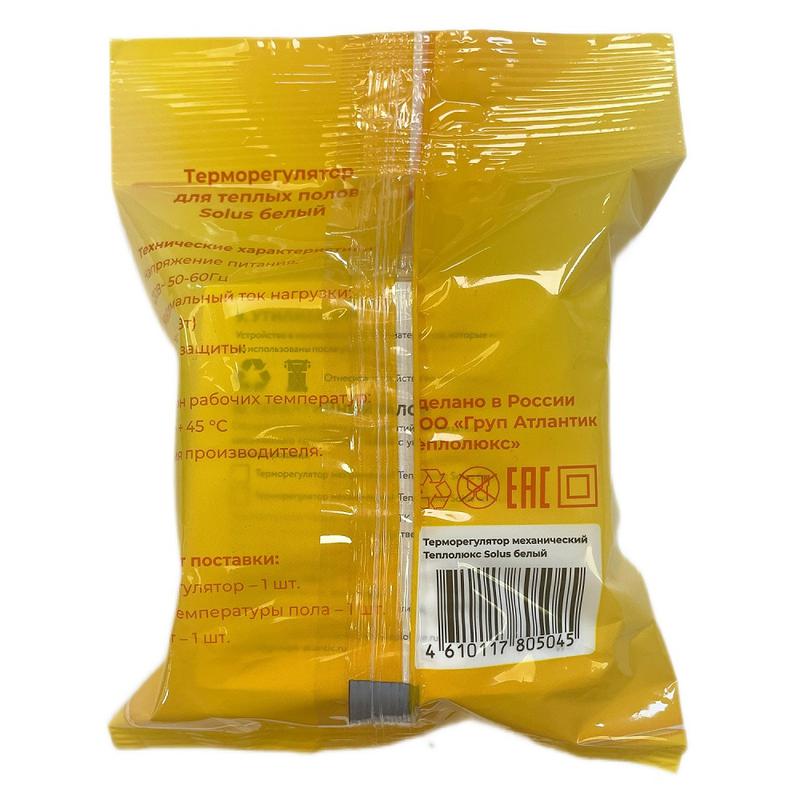 Терморегулятор механический Solus белый, код 100037050400, производитель Теплолюкс