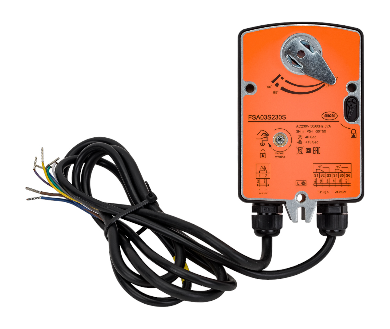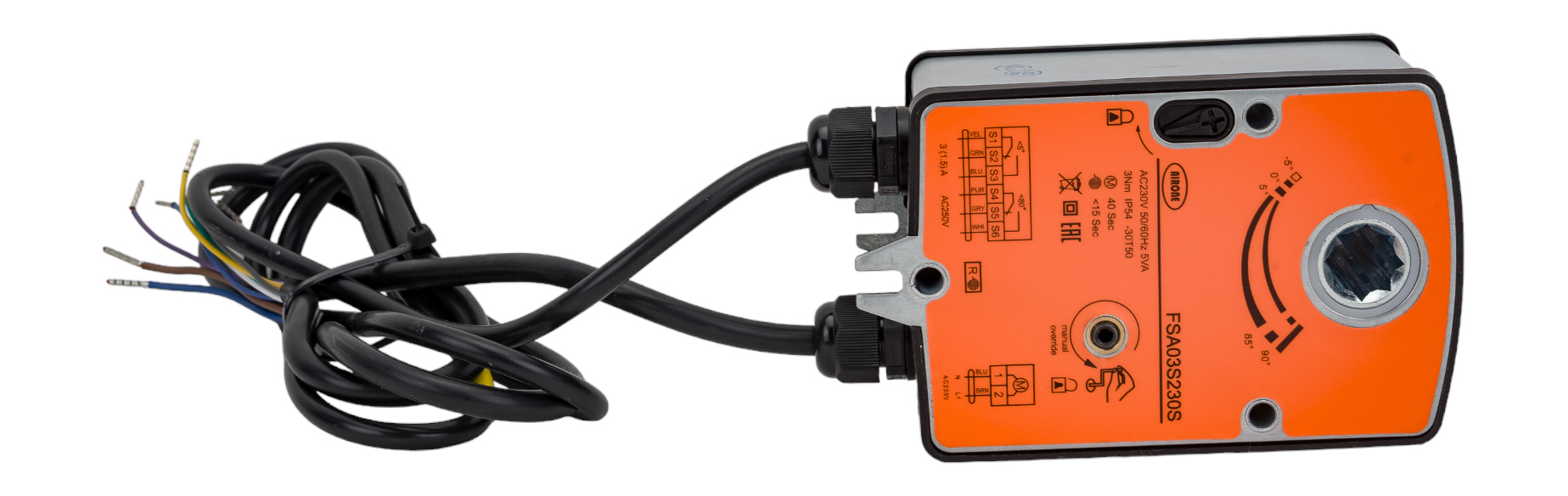 Электропривод с возвратной пружиной для противопожарных клапанов на 220В, с двум дополнительными переключателями FSA03S230S NL(ON-OFF) VentART