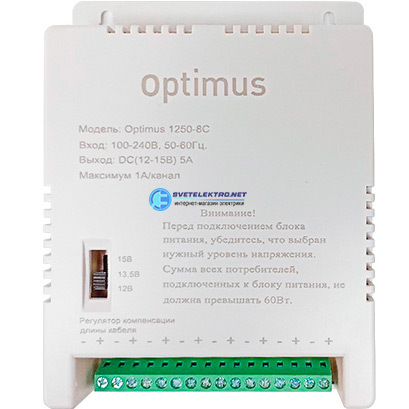 Блок питания 12В 5А Optimus 1250-8С БП 1250-8С Optimus CCTV
