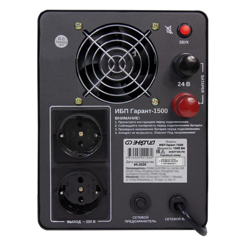 Источник бесперебойного питания line-interactive Гарант 1500 ВA/900 Вт, 1Ф/1Ф, LED-дисплей, без АКБ, розетки Shuko, з/у 13А, DC выход, код Е0201-0041, производитель Энергия
