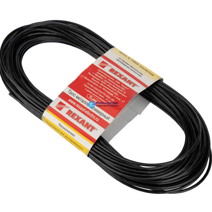 Трос стальной в ПВХ оплетке d=2.5 мм. черный (20 м), код 09-5125-3, производитель REXANT
