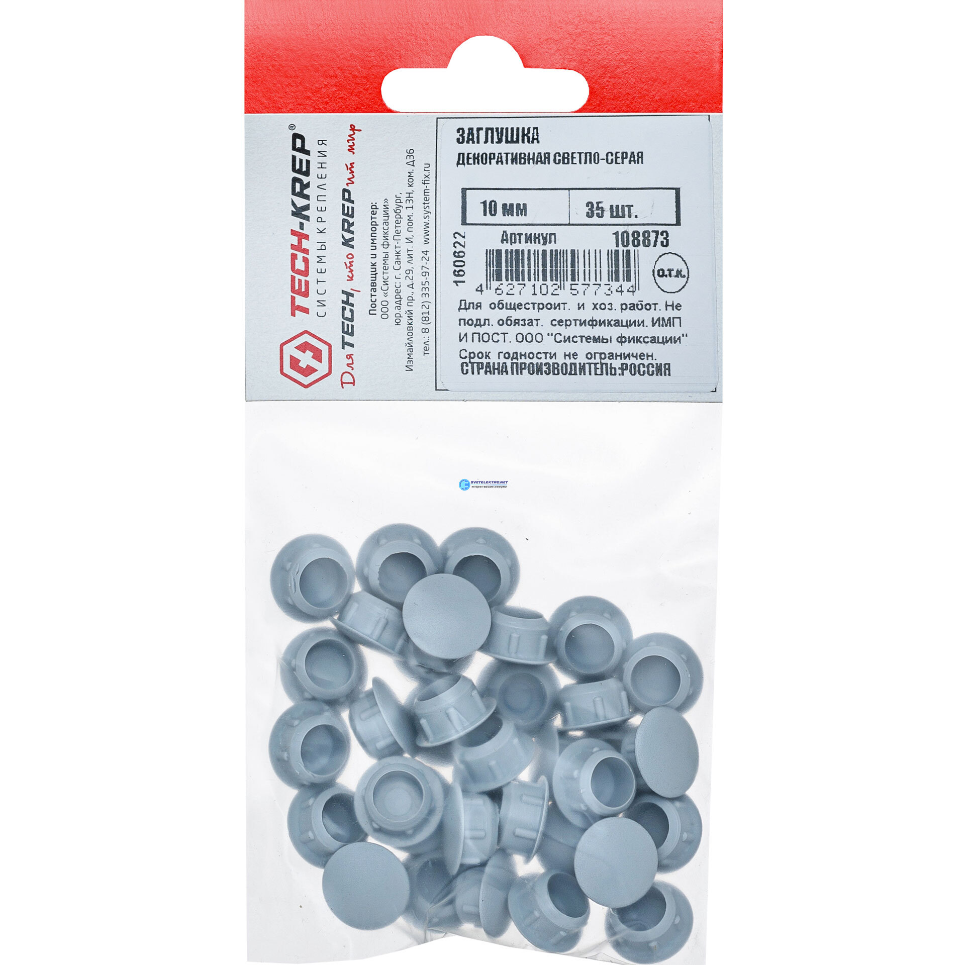 Заглушка декоративная мм светлосерая (35 шт) пакет, код 108873, производитель Tech-KREP