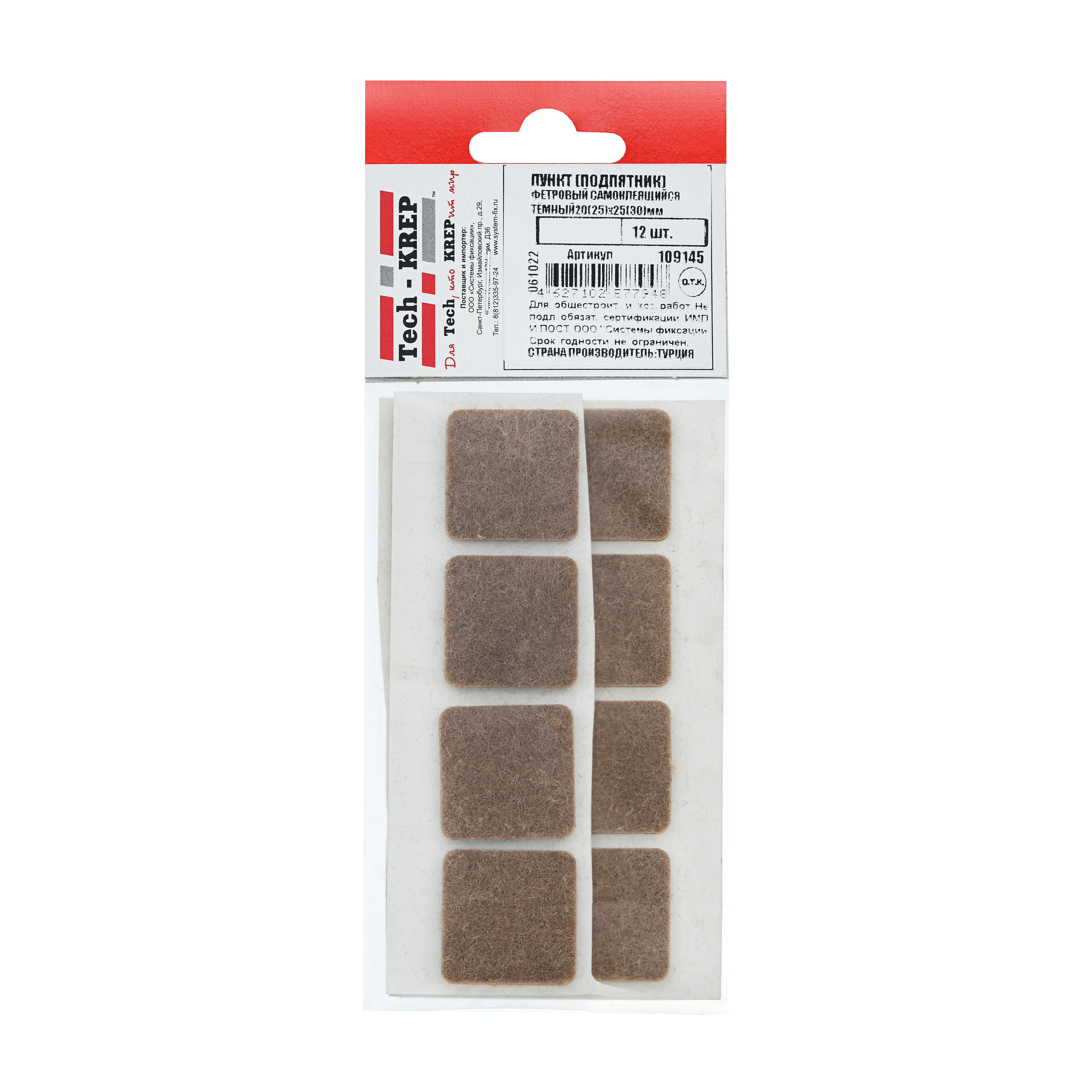 Пункт фетр. самокл. 25х30 тёмный (12 шт) пакет, код 109145, производитель Tech-KREP