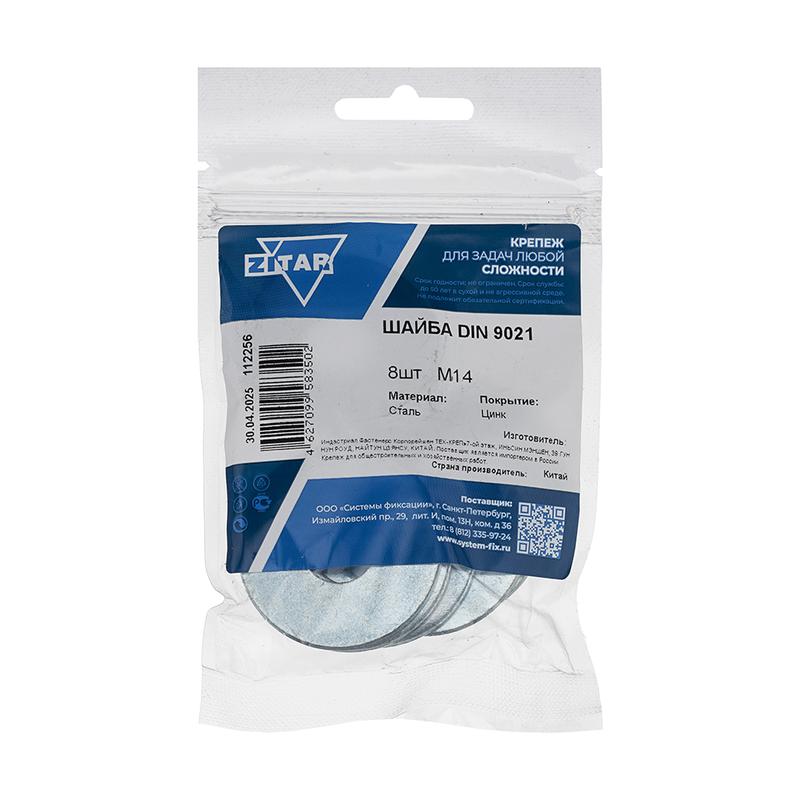 Шайба DIN9021 М14 увеличенная кузовная оцинкованная (8 шт), код 112256, производитель Tech-KREP