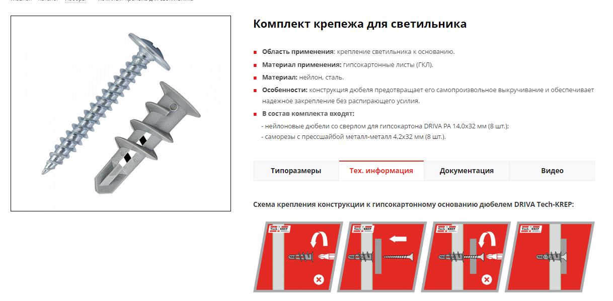Набор для крепления светильника (гипсовая стена), код 114425, производитель Tech-KREP