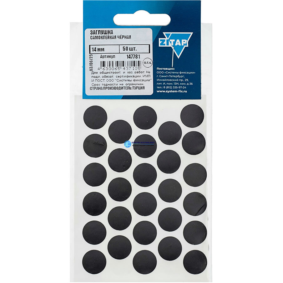 Заглушка самоклейка мм черная (50 шт), код 147781, производитель Tech-KREP