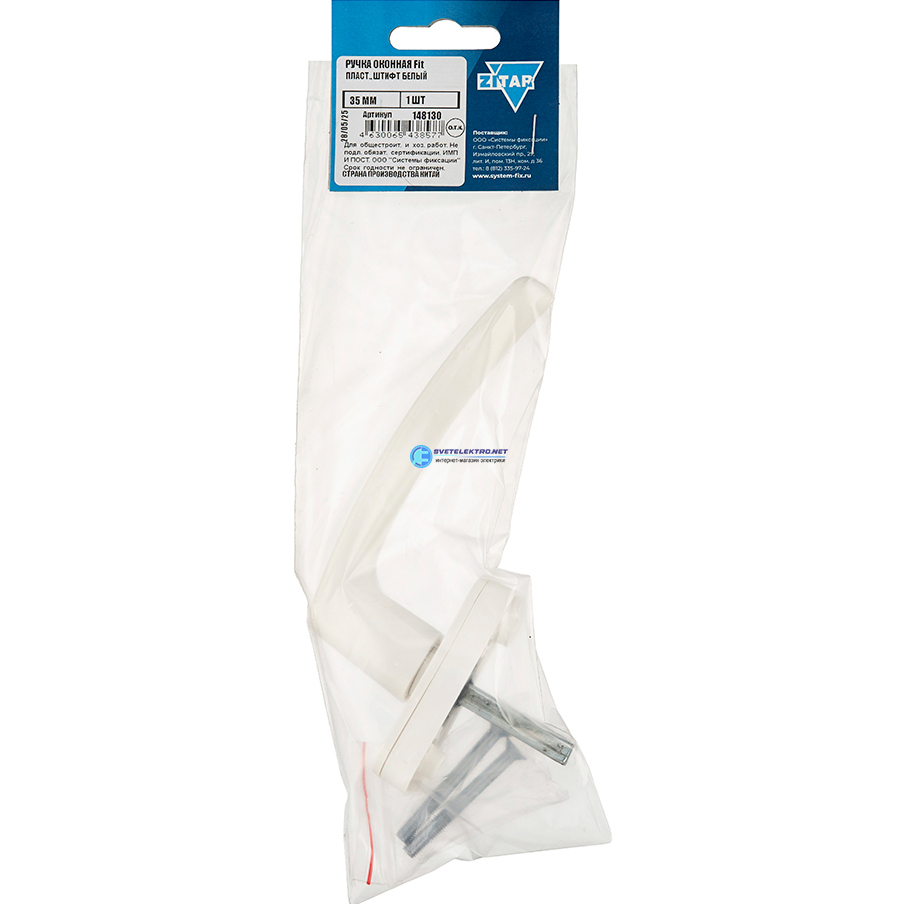 Ручка оконная Fit штифт 35 пластик бел. (уп.1шт) Tech-Krep/Zitar 148130 148130 Tech-KREP