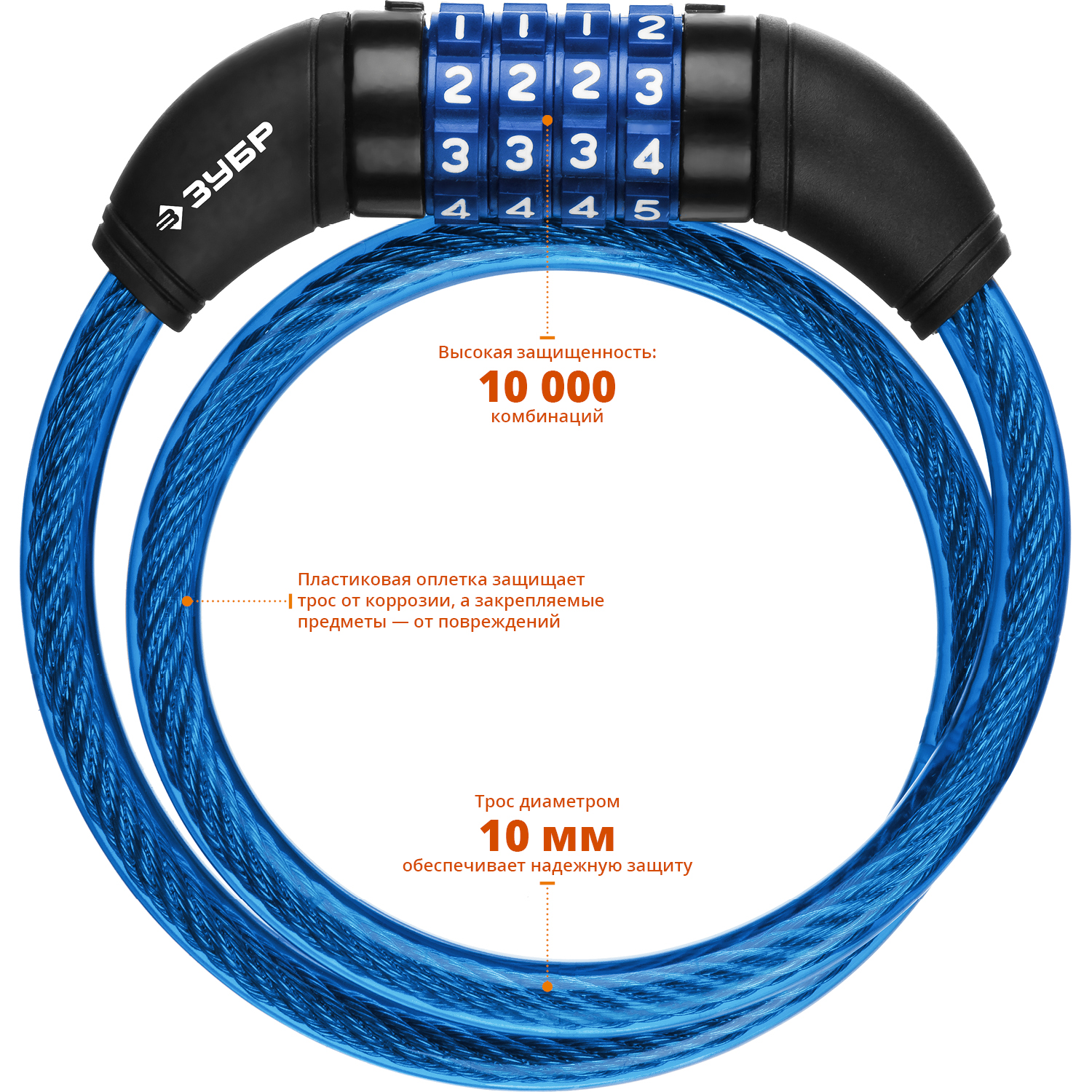 Замок ''Профессионал'', тросовый, кодовый, с изменяемым кодом, длина троса - 650мм, d 10мм 37262-65_z01 ЗУБР