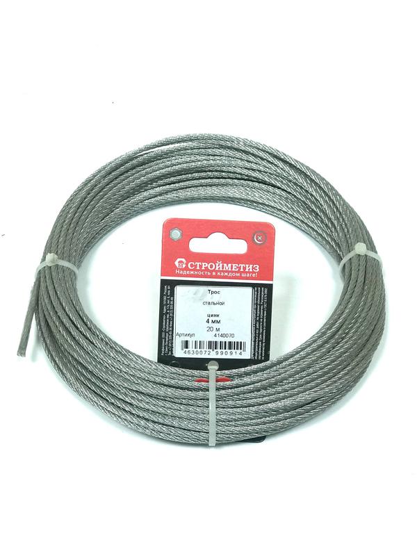 Трос стальной 4.0мм DIN 3055 цинк (уп.20м) подвес, код 4140070, производитель СТРОЙМЕТИЗ
