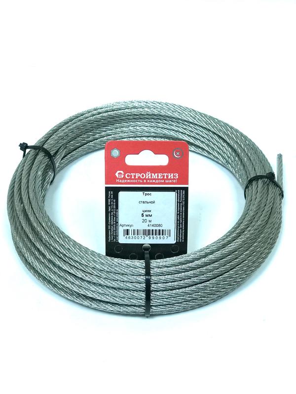 Трос стальной 5.0мм DIN 3055 цинк (уп.20м) подвес СТРОЙМЕТИЗ 4140080 4140080 СТРОЙМЕТИЗ