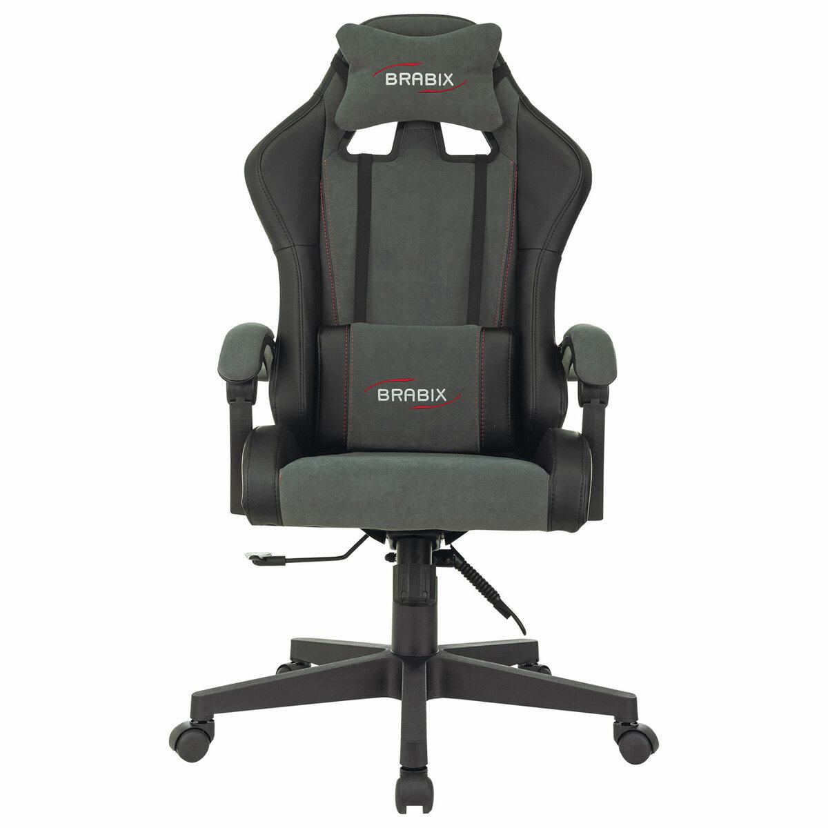 Кресло компьютерное Striker GM-121, синхромеханизм, 2 подушки, экокожа/велюр, черное/серое 532961 Brabix