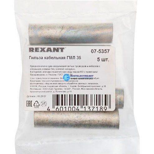Гильза ГМЛ 35-10 (35 кв мм - 10 мм) ГОСТ 23469.3-79 5шт, REXANT 07-5357 REXANT