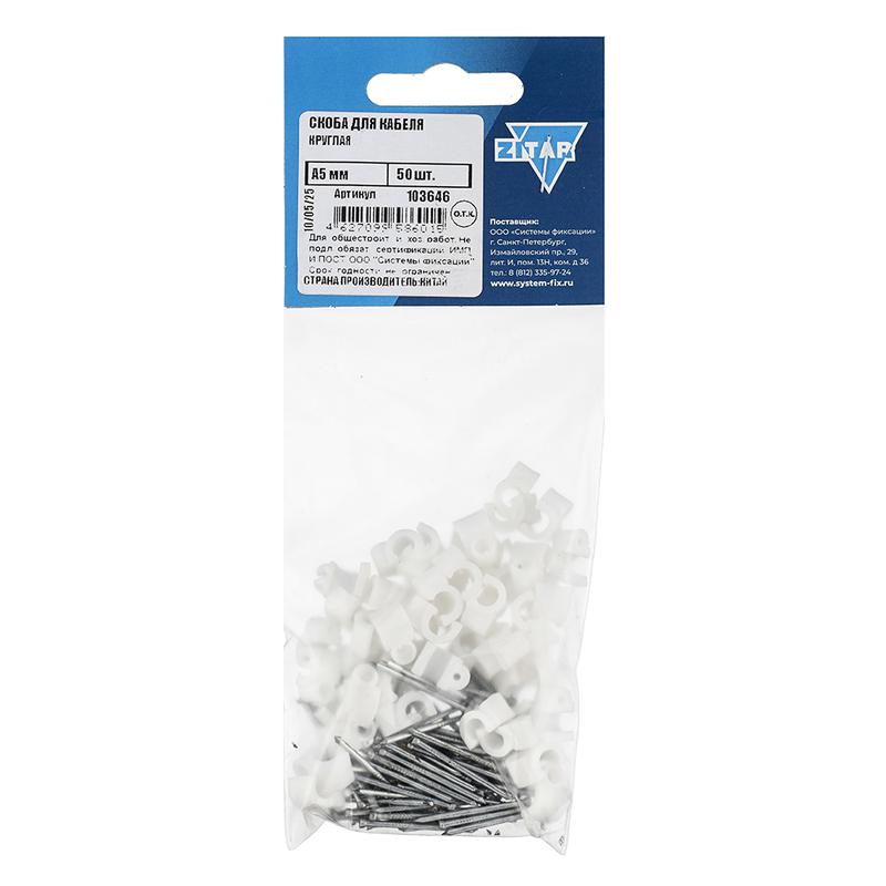 Скоба для кабеля круглая А5мм (50шт), код 103646, производитель Tech-KREP
