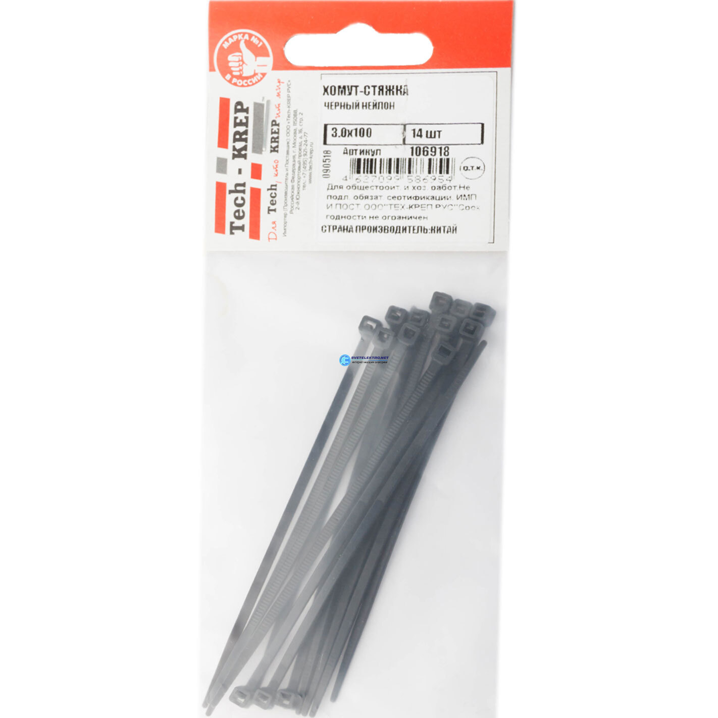 Хомут-стяжка 3.0х100 черный нейлон (14шт), код 106918, производитель Tech-KREP