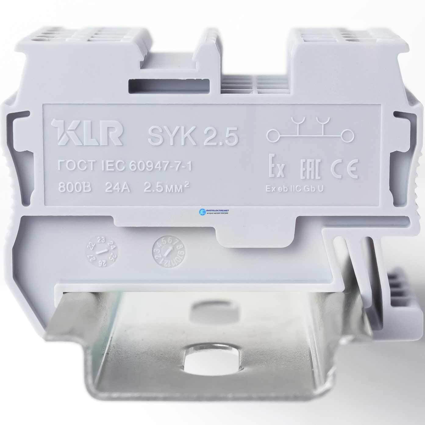 Клемма проходная, пружинный зажим, серая, 24 А, 800 В, 2.5 кв. мм (1 уп-80шт) SYK 2.5-V0 KLR 1236020V АКЭЛ