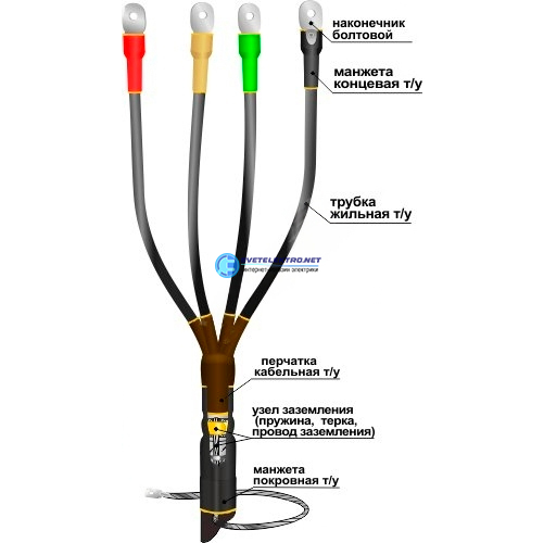 | Сфера применения: | Для оконцевания 4-х жильных силовых кабелей с бумажной или с пластмассовой изоляцией, с броней или без брони (внутренней установки): |