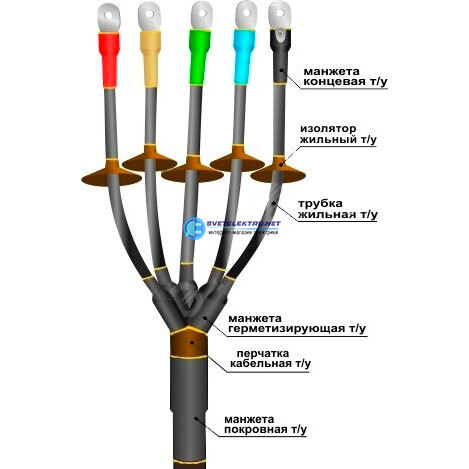 | Сфера применения: | Для оконцевания 5-ти жильных силовых кабелей с пластмассовой изоляцией без брони (наружной установки): |