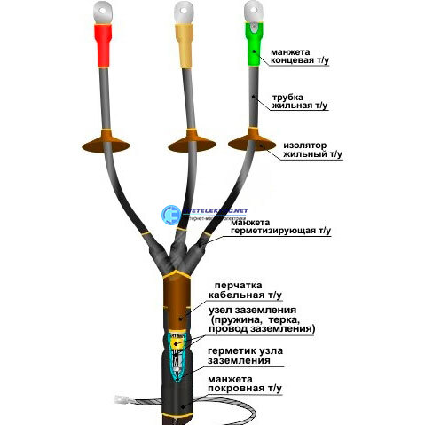 | Сфера применения: | Для оконцевания 3-х жильных силовых кабелей с бумажной или с пластмассовой изоляцией, с броней или без брони (наружной установки): |