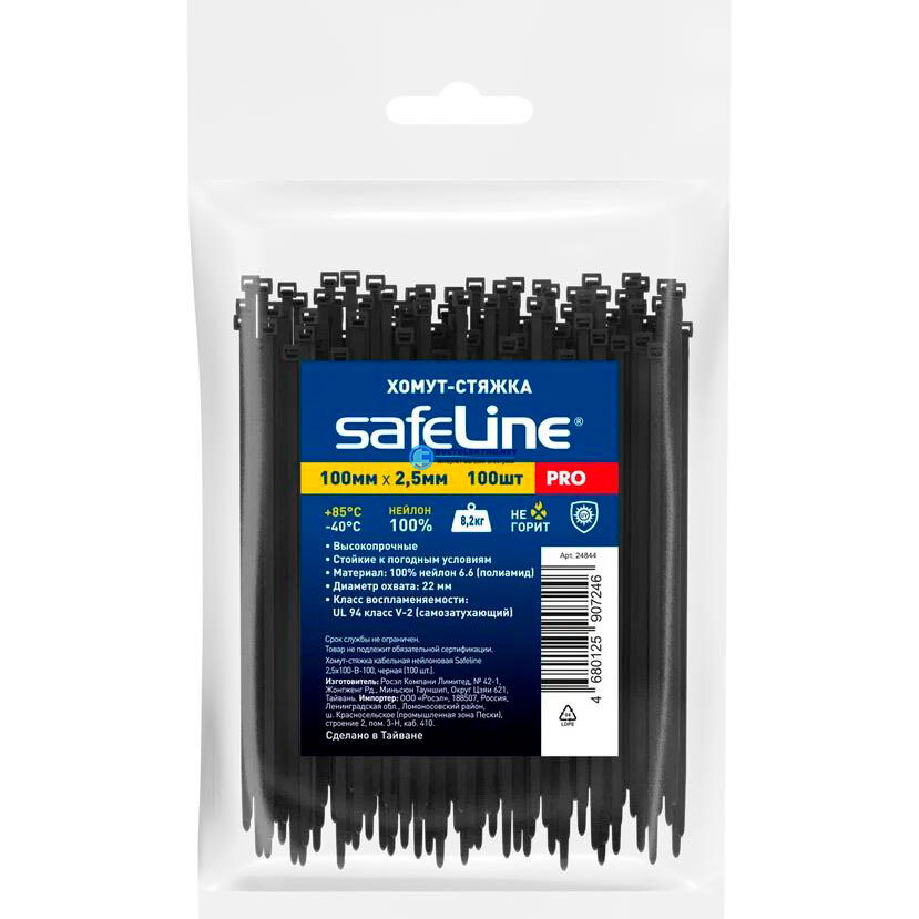 Хомут-стяжка кабельная нейлоновая 2,5x100-B-100, черная (100 шт.), код 24844, производитель SafeLine