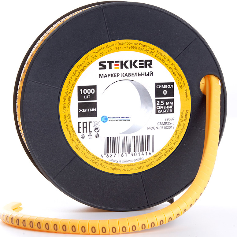 Кабель-маркер для провода сеч.2,5мм, желтый ( в упак), код 39097, производитель Stekker